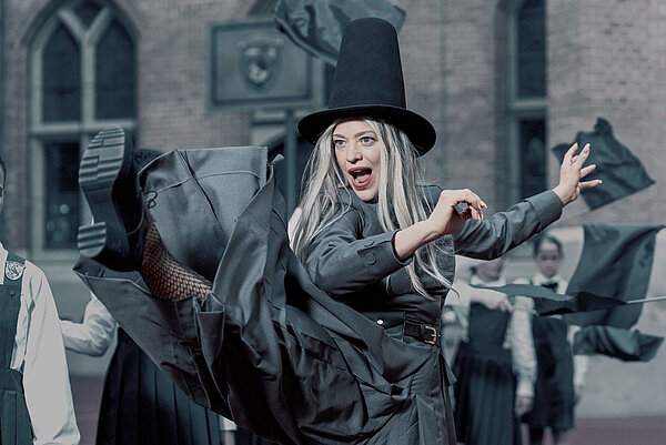 Das Setting ist sehr bunt und will mit den übertriebenen Farben der Kostüme und Frisuren z.B. von Bibis Mutter Barbara oder dem Bürgermeister an die Zeichentrickbilder erinnern, doch wirkt das Ganze dadurch ziemlich unecht. Auch die Darstellung wichtiger Hexen-Figuren wie der ältesten Hexe, Mania, überzeugt ebenso wenig wie die getanzten Filmsongs, weil sie wenig originell sind und sich nicht so geschickt in die Geschichte einfügen, wie man das von anderen Kinderfilm-Musicals gewöhnt ist.