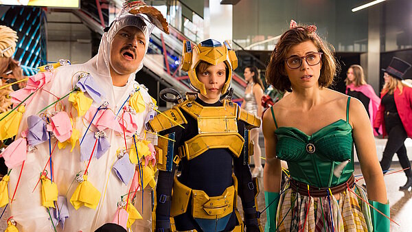 „Superkräfte mit Köpfchen“ basiert auf dem Buch „Dein Kopf, der Superheld“ und sieht ein bisschen wie ein Comic aus. Die Bilder erstrahlen nämlich in poppig-bunten Farben. Der Humor setzt meistens auf krasse Gegensätze, ist manchmal auch ein bisschen übertrieben. So bestehen Levs Eltern zum Beispiel darauf, dass er zu Hause einen Treppenlift mit Anschnallgurt benutzt. Während seine Mutter und sein Vater überall nur Gefahren sehen, steht seine schräge Oma für die pure Lebensfreude und den Mut zum Risiko. Dass ihre Einstellung auch böse Folgen haben kann, lässt der Film leider ein bisschen unter den Tisch fallen. Was ebenfalls nicht ganz gelungen ist: In der zweiten Hälfte wechselt teilweise urplötzlich die Stimmung. Von lustig zu traurig und ernst – das geht hier etwas schnell. Mit einem schönen Gag überraschen uns die Macher*innen dafür aber wieder am Schluss: Im Abspann stehen bei den Namen der am Film beteiligten Menschen kurze Hinweise, was ihnen Angst bereitet. Wir alle sind eben nicht frei von Sorgen!